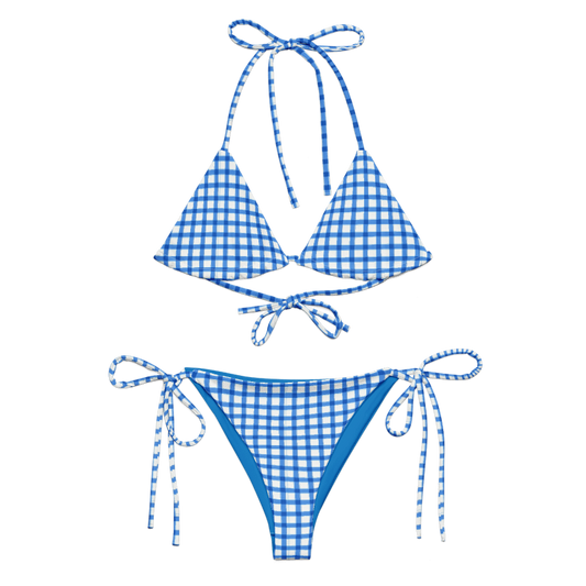 Blu Gingham / Áine Triangle String Bikini Top