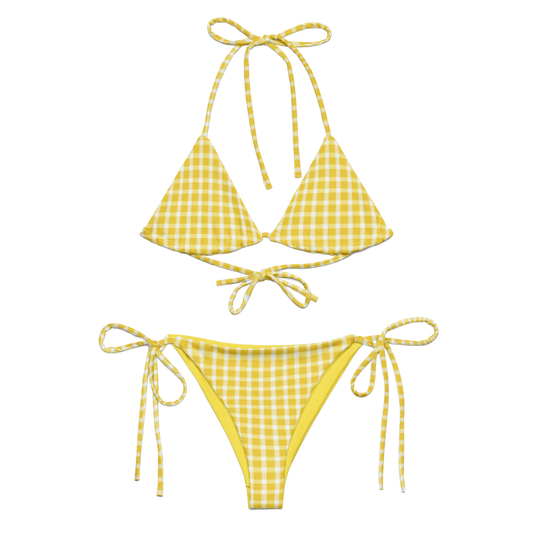 Limone Gingham / Áine Triangle String Bikini Top