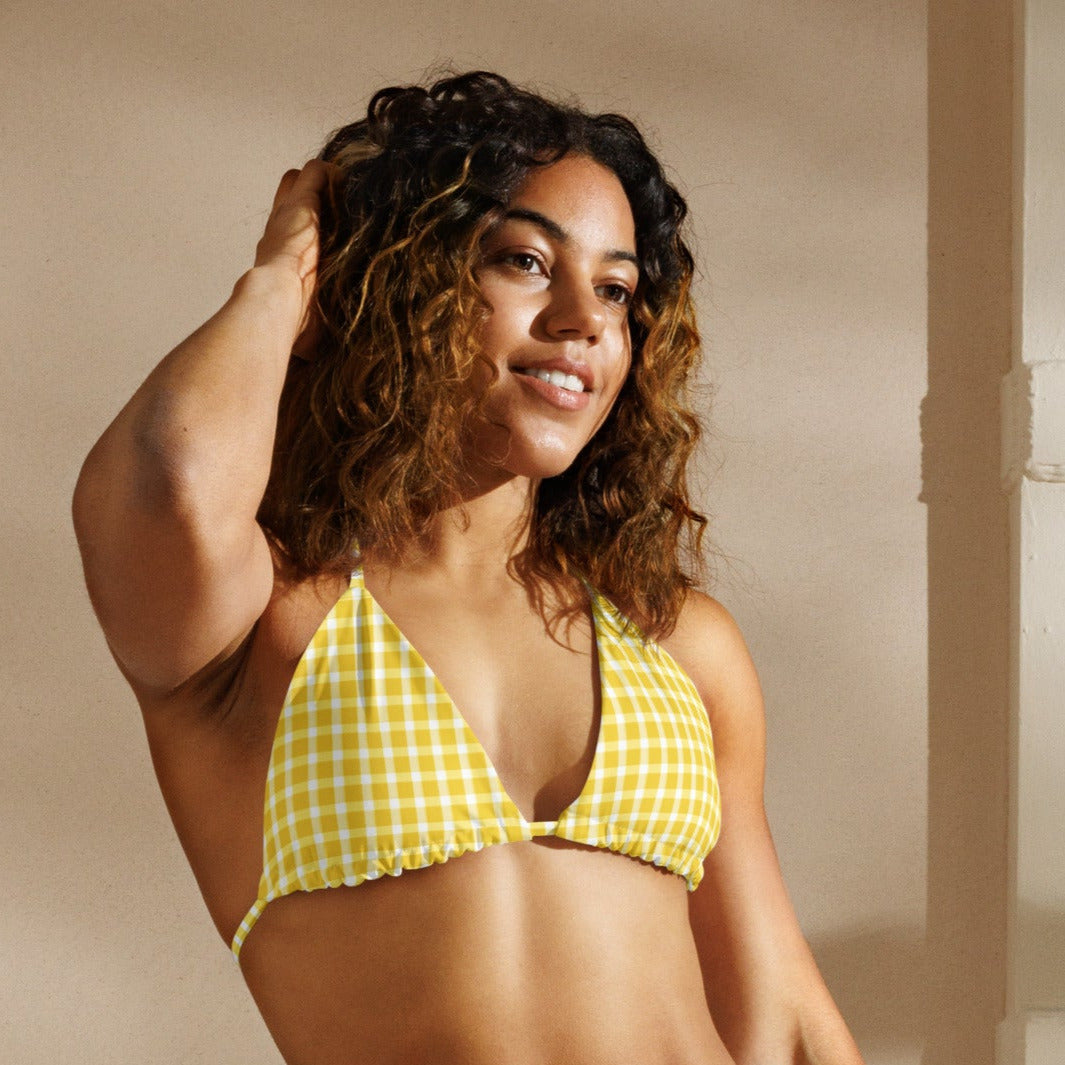 Inspired by the land of love and lemons, classic yellow gingham patterned cheeky bikini gives subtle Old Money Italia vibes🍋⛵